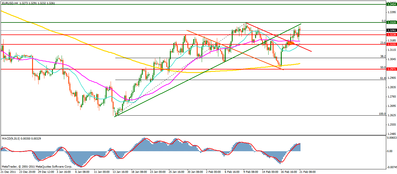 Incercarile esuate de a sparge nivelul psihologic 1.3300 poate duce la formarea unei unde corective ce va avea ca tinta acoperirea gap`ului format la deschiderea saptamanii. Retragerea de 23.6% a trendului 1.2625 – 1.3320 reprezinta un important nivel de suport. Mediile mobile de 20 respectiv de 50 de perioade valideaza importanta acestui nivel pe termen scurt.