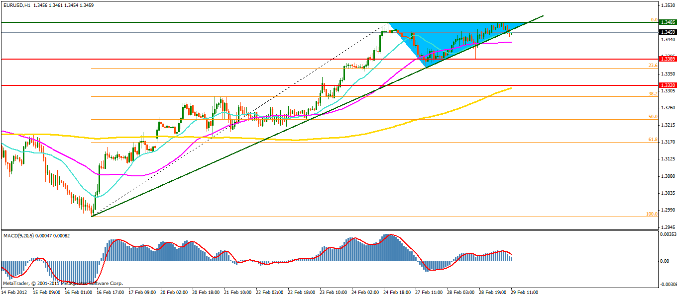 EUR/USD ramane pe un trend ascendent, chiar daca pretul a reusit sa strapunga nivelul acestuia. Nivelul 1.3485, testat in doua randuri in ultimele zile, ramane principala rezistenta si reprezinta triggerul pentru continuarea trendului ascendent. O eventuala confirmare a spargerii liniei de trend ascendent poate va veni odata cu depasirea minimului anterior, respectiv a primului nivel de suport 1.3389.