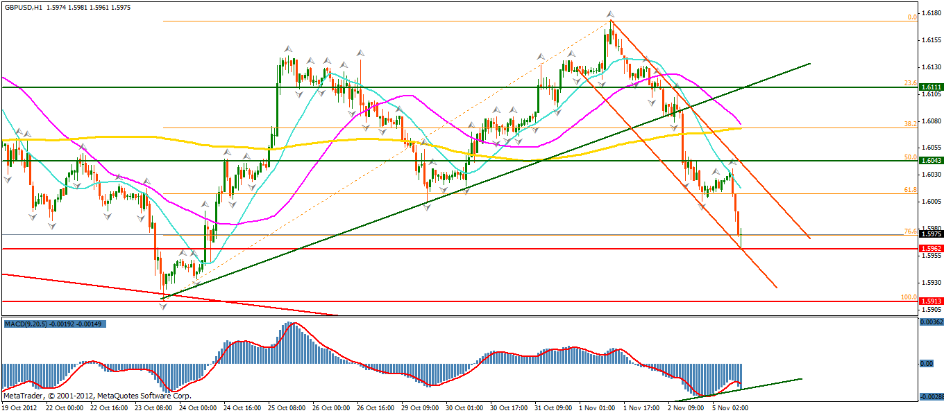 Pe trend descendent: Vanzare la nivelul 1.5960 cu SL @1.5980, TP @1.5915