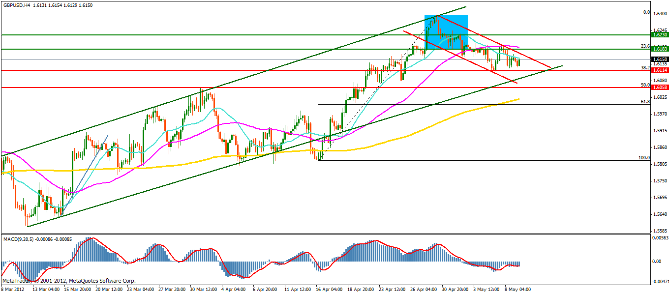 Pretul ramane pe un trend principal crescator, chiar daca evolutia ultimelor zile a adus usoare corectii. Ipoteza reluarii tendintei de crestere poate fi introdusa odata cu depasirea limitei superioare a canalului corectiv. Ca niveluri de rezistenta avem in jurul valorilor 1.6183, respectiv, 1.6230.
